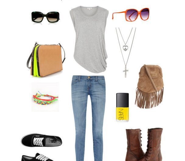 Otra manera «moderada» de llevar los colores neón, es combinándolos con mezclilla o denim y colores neutros… De esta manera podés lograr un look muy a la moda y también muy sobrio. Como verás, el secreto está en mantener los zapatos y el bolso en un color neutro, y si querés agregar algo más de color neón podés hacerlo en alguna pulsera o anillo pero manteniendo la simpleza del atuendo.