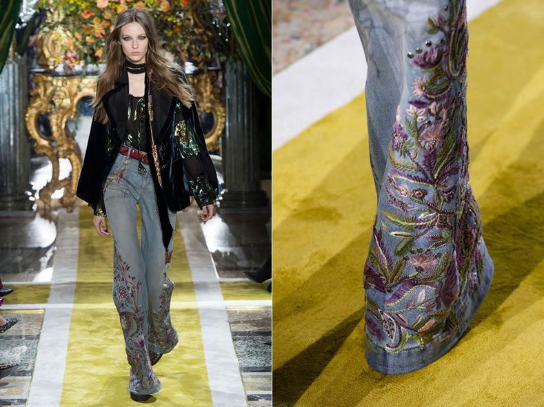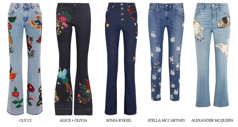 Acá te dejo más ejemplos de jeans decorados de marcas reconocidas como Gucci, Stella McCartney, Sonia Rykiel y Alexander McQueen.