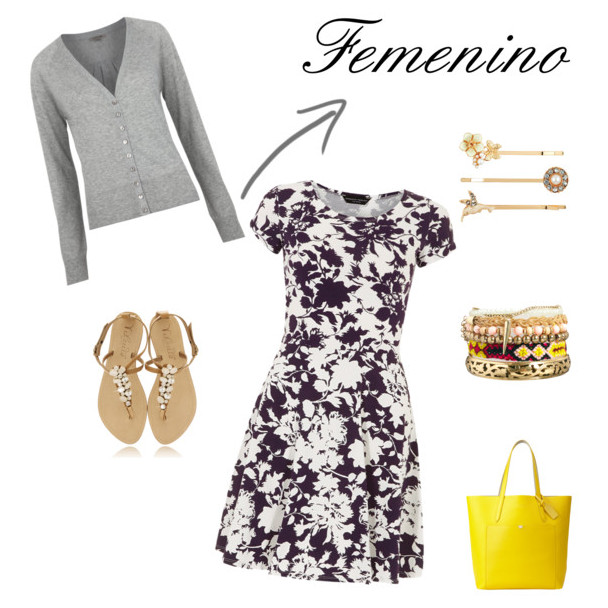 Pues el primer look es quizá un poco obvio, ya que la manera más fácil de lucir femenina es utilizando un vestido… Como estamos proponiendo atuendos para el día a día, lo recomendable es buscar un vestido en algodón, punto o jersey, o algún material cómodo. Para hacer el look un poco más interesante podés buscarlo en un lindo estampado y «agregar» algunos accesorios femeninos como un pequeño detalle para el cabello, un bolso en un color llamativo, y unas lindas sandalias -que por cierto podés cambiar por unos zapatos cerrados planos o con un tacón bajo-.