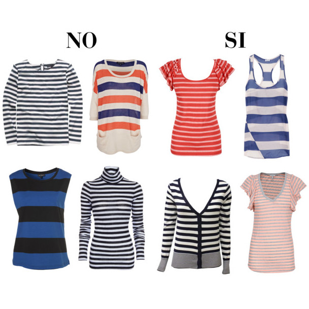 Sabido esto, igual es importante que tomés en cuenta que si tenés algo de sobrepeso en la parte superior del cuerpo y lo que querés es lucir más delgado(a), no es cualquier prenda de rayas horizontales la que más te va a favorecer; por lo que te dejamos una pequeña guía de cuáles elegir. ;)