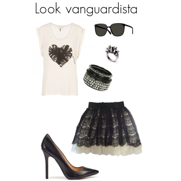 En el segundo atuendo los zapatos stilettos de punta agregan un toque sexy -junto con la falda de encaje- a una camiseta en blanco y negro y unos accesorios con aire rockero, en un outfit muy vanguardista que jamás pasará desapercibido.
