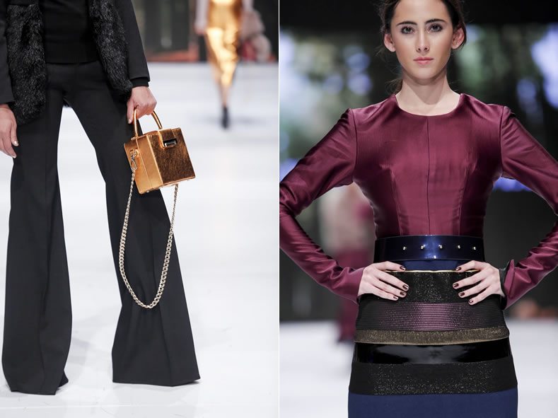 Bolsos muy estructurados en tonos llamativos y cinturones sencillos con tachuelas terminan de completar una colección muy sofisticada con cierto aire retro.