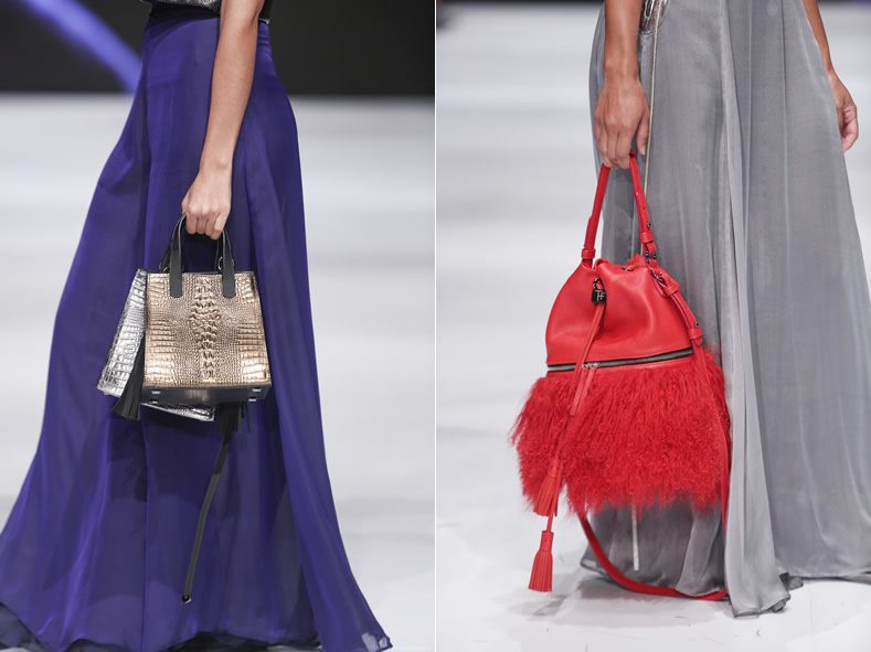 En accesorios hubo muchísima variedad como era de esperarse por las propuestas tan diversas, sin embargo, también hubo tendencias marcadas como los bolsos de líneas sencillas y muy estructurados que se vieron en las pasarelas de Bibhu Mohapatra, Alfredo Martínez, Toribio, y Mancandy.