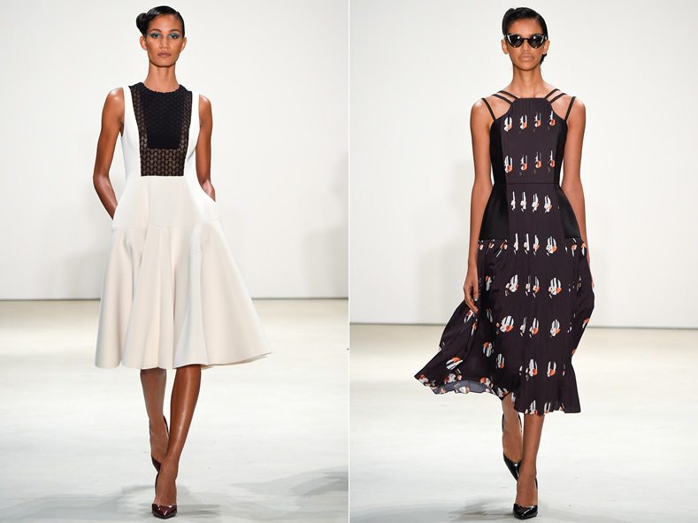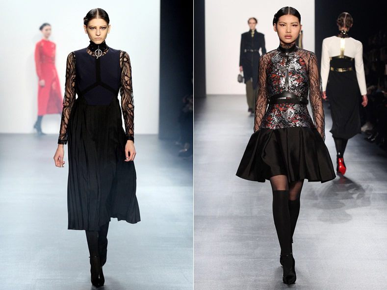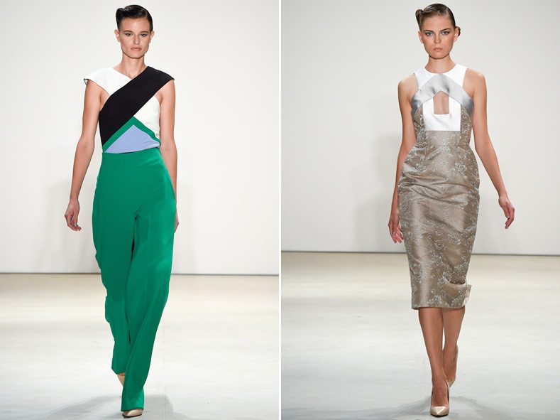 A continuación te dejo una pequeña muestra de sus dos colecciones más recientes correspondientes a primavera verano y otoño invierno 2016. En la primera vemos vestidos y prendas muy estructuradas con elementos y estampados geométricos, bloques de color, y un lindo juego de materiales y texturas, en la segunda se aprecia una fuerte influencia asiática donde sobresale el uso del color rojo, las decoraciones con libélulas, y se repite el uso de insertos o bloques de color, y la mezcla de materiales, donde sobresale el uso del encaje en mangas y escotes.