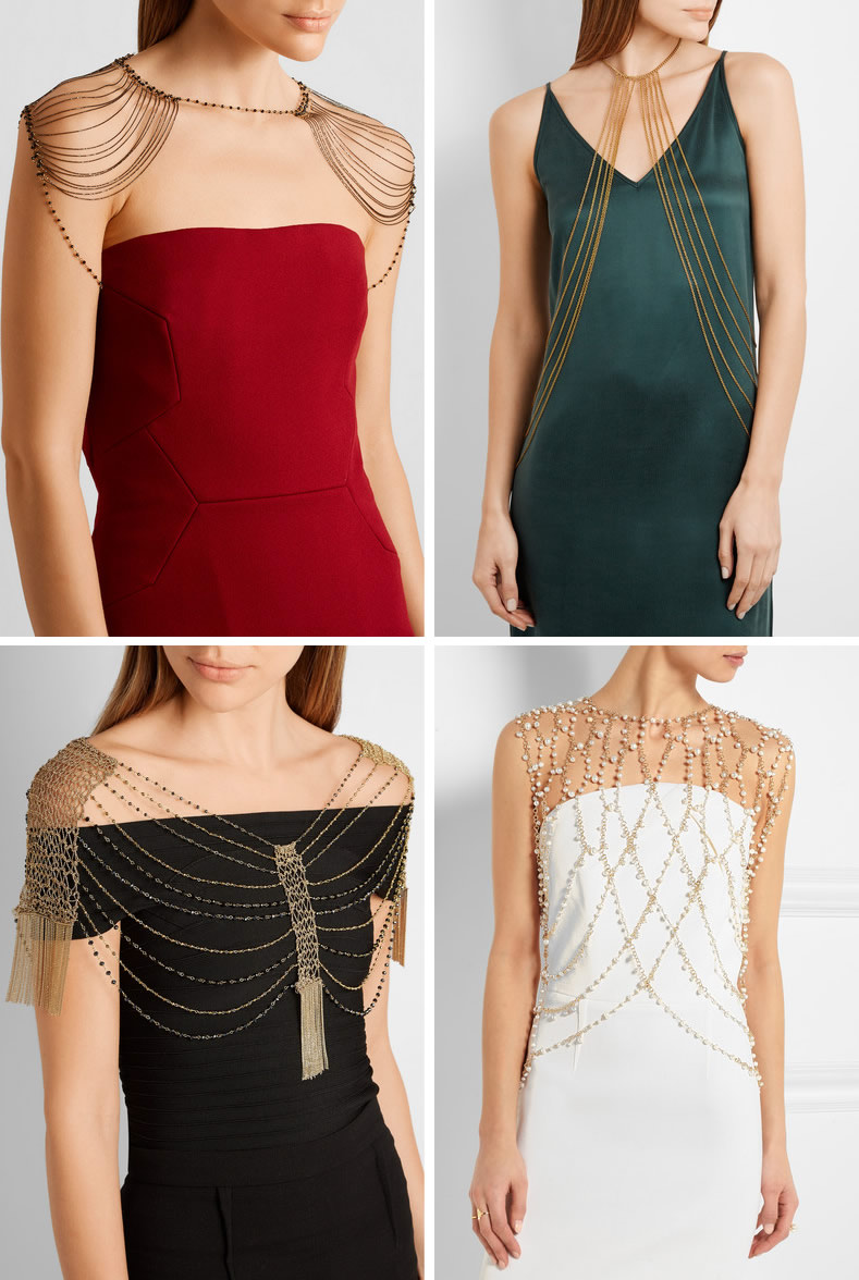 Si eres clásica a lo mejor los ejemplos anteriores te pueden parecer algo osados, pero lo bueno es que también hay cadenas para el cuerpo mucho más sofisticadas como las que te muestro abajo de marcas como Rosantica y Chan Luu disponibles en la tienda en línea de artículos de diseñadores famosos net-a-porter.com