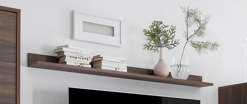 En la primera fotografía te muestro un ejemplo de cómo un estante simple sobre tu televisión, puede marcar una gran diferencia en la decoración de ese tipo de espacio.