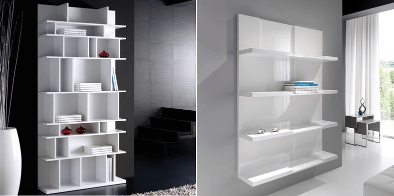 En estos casos las estanterías son blancas y las paredes oscuras, pero también funciona de manera inversa. Por otro lado está el hecho de que podés elegir estanterías sin fondo o con fondo, queda a tu gusto y conveniencia.
