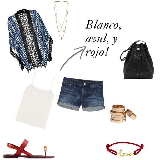 Un collar igual largo, unos anillos sencillos, y una mochila o bolso en negro, y lista para lucirte con los colores de la tricolor! ;)