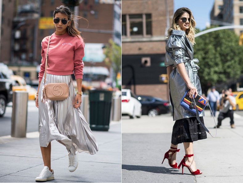 Los tonos metálicos se llevan en una gran variedad de prendas como faldas plisadas, vestidos, tops o blusas, jackets, y mucho más.