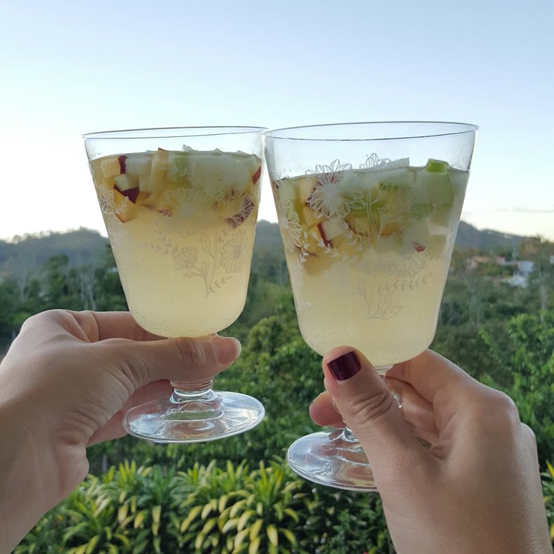 Espero podás hacer esta sangría de vino blanco para recibir a tus invitados, y la disfrutés también… ¡Salud! ;)