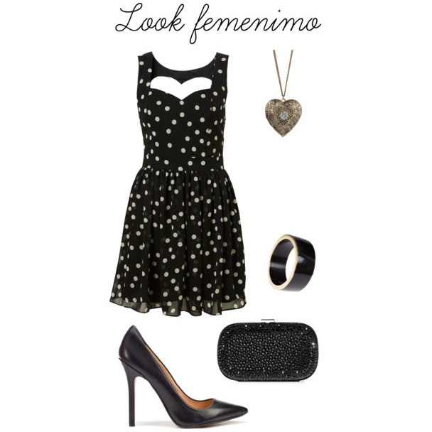 Y por último en la tercera propuesta estos zapatos de tacón de aguja terminan de darle un aire ultra femenino a este outfit con vestido de lunares -y detalle de un corazón en la espalda- y collar de corte romántico.